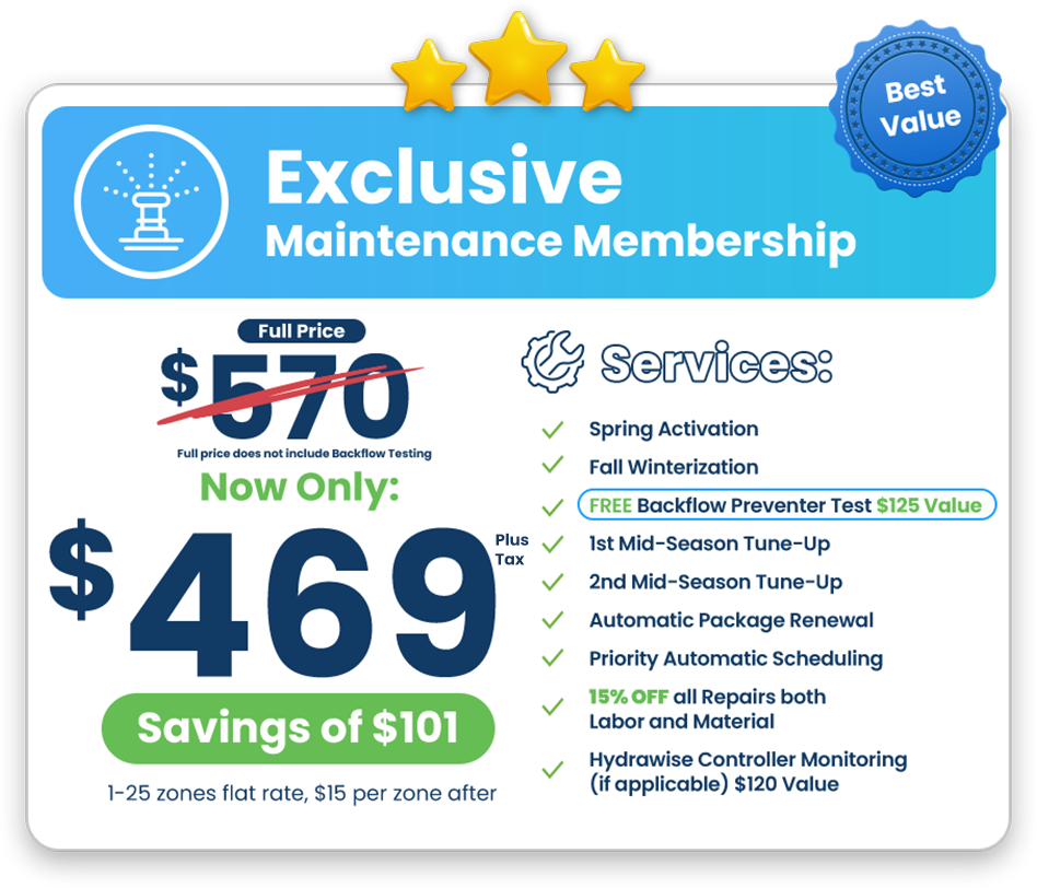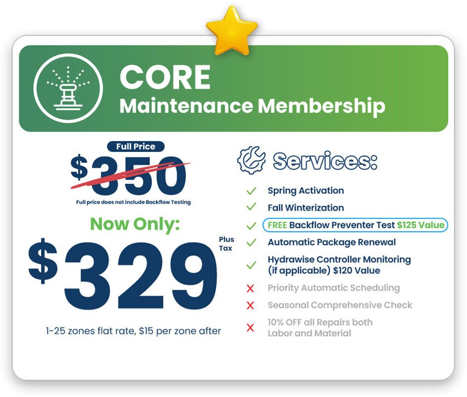 HOW IT WORKS: By entering your address below, you will be redirected to a secure site to select and pay for your Irrigation Membership Package – CORE, VIP & EXCLUSIVE. Program enrollment auto-renews in 12 months unless notice is delivered 30 days in advance of renewal.